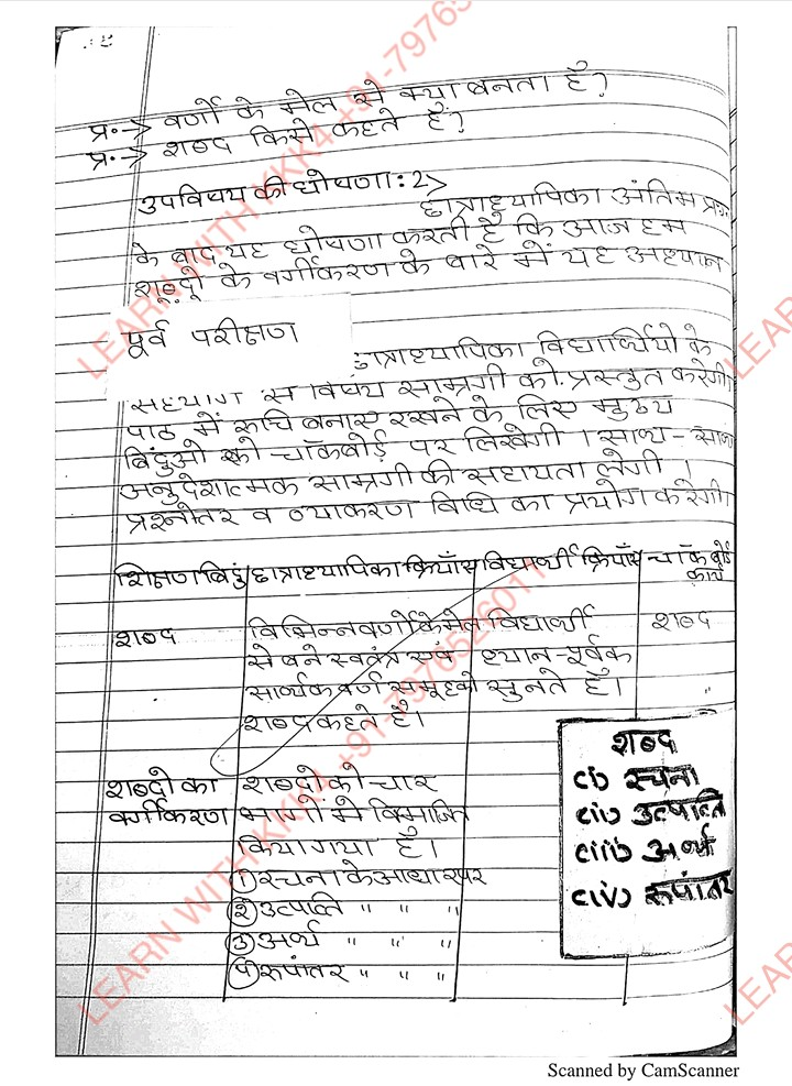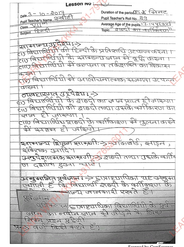 हिंदी lesson plan pdf b.ed. 1st year