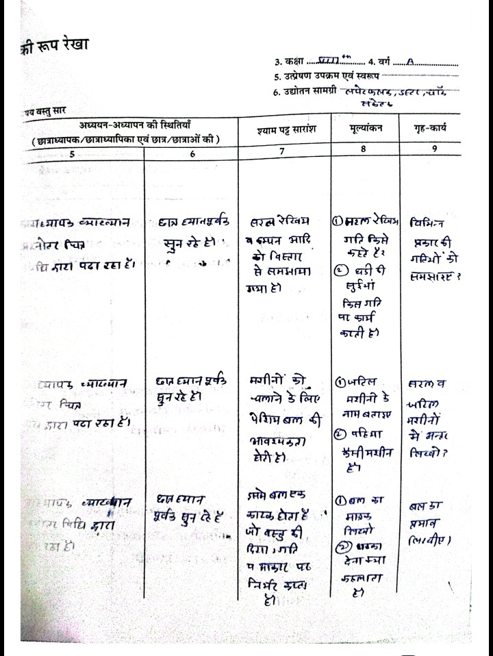 physics lesson plan diary in hindi for b.ed students